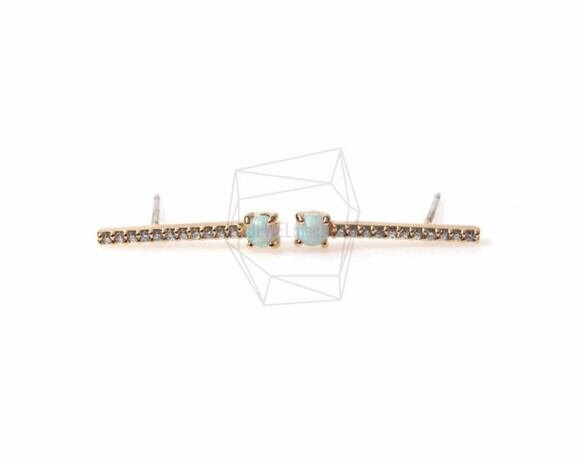 ERG-462-G/2PCS/CZ Iridescent Bar Earring/3mm x 16mm/Gold Plated over Brass
