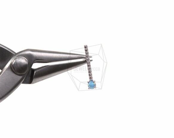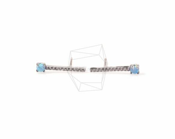 ERG-462-R/2PCS/CZ Iridescent Bar Earring/3mm x 16mm/Rhodium Plated over Brass