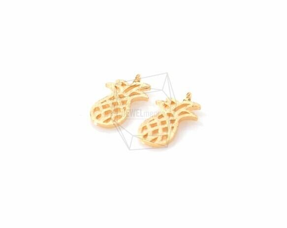 PDT-1162-MG/2Pcs-Brushed Pineapple pendant / 9mm x 14mm /Matte Gold Plated over brass