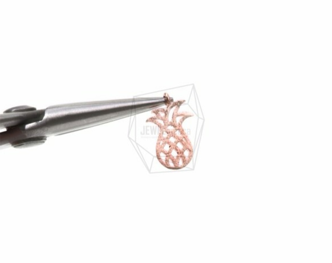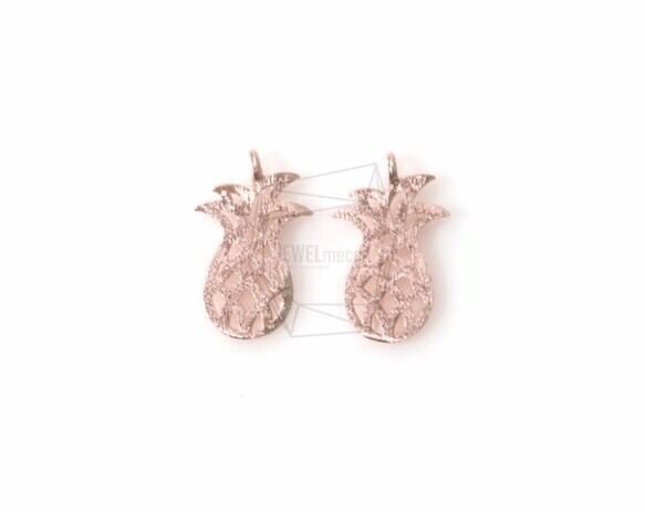 PDT-1162-MPG/2Pcs-Brushed Pineapple pendant / 9mm x 14mm /Matte Pink Gold Plated over brass
