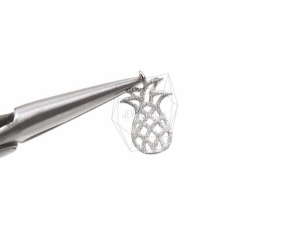PDT-1162-MR/2Pcs-Brushed Pineapple pendant / 9mm x 14mm /Matte Rhodium Plated over brass