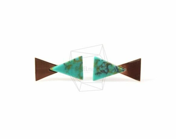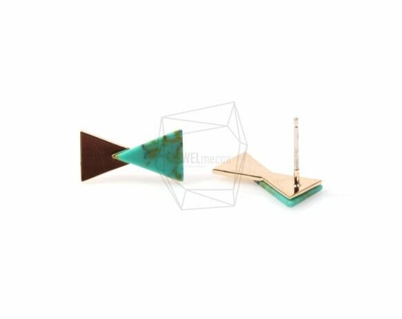 ERG-460-G/2Pcs-Synthetic stone ribbon Ear Post/ 9mm x 15mm /Gold Plated over Brass/925 sterling silver post