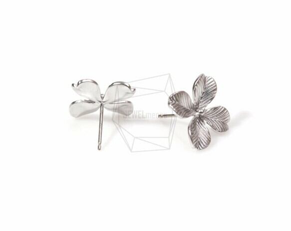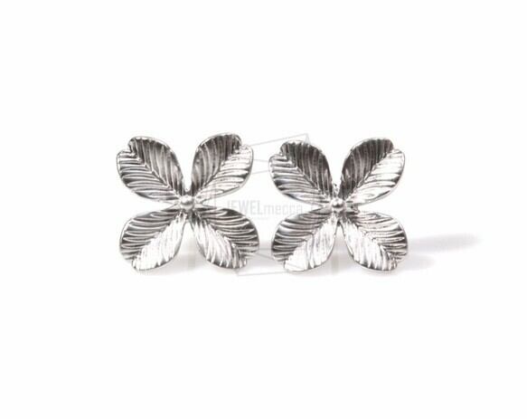 ERG-467-MR/2Pcs-four Petal Flower Ear Post/ 16mm x 16mm /Matte Rhodium Plated over Brass/925 sterling silver post