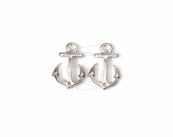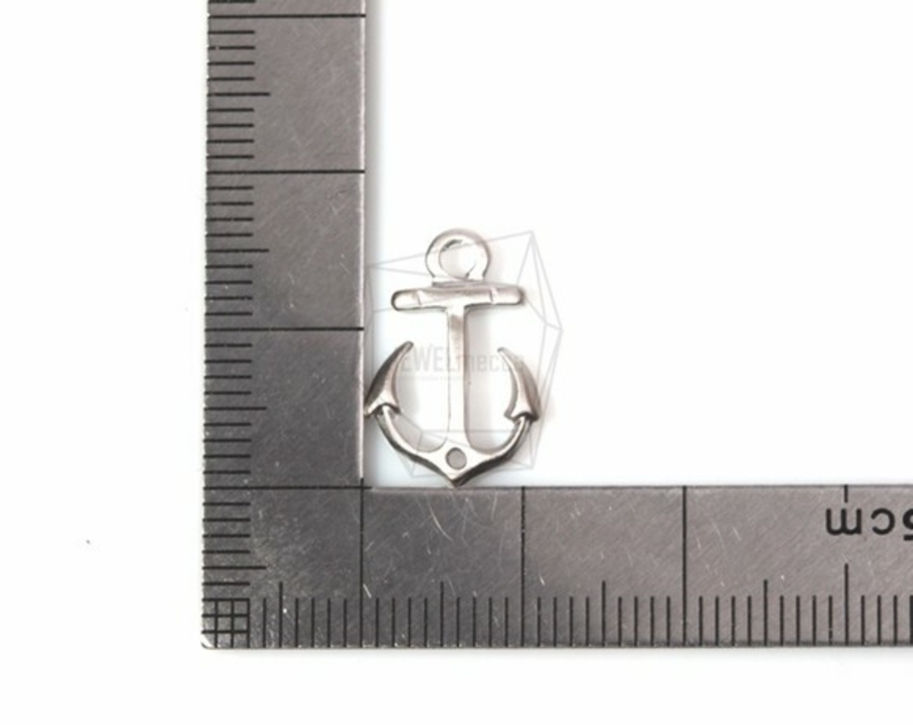 PDT-1176-MR/4Pcs-Mini Anchor Pendant/ 11mm x 16mm/Matte Rhodium Plated Over pewter