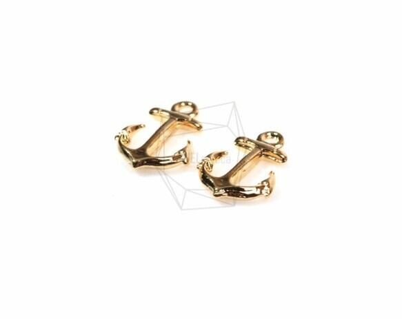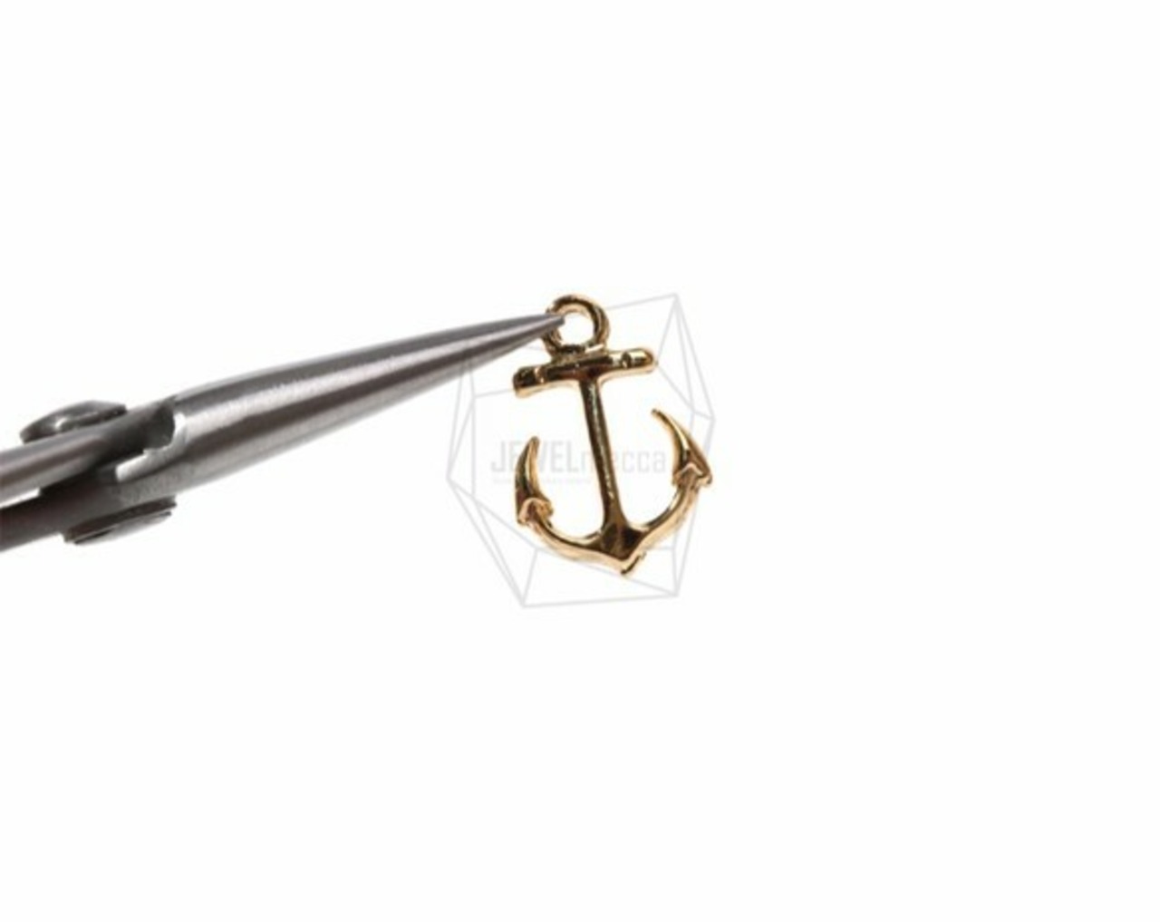 PDT-1177-G/4Pcs-Mini Anchor Pendant/ 11mm x 16mm/Gold Plated Over pewter