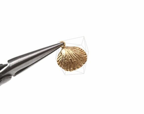 PDT-1178-MG/4Pcs-Shell Charms, Clam Shell, Beach Charms/ 13mmx13mm /Matte Gold Plated over pewter