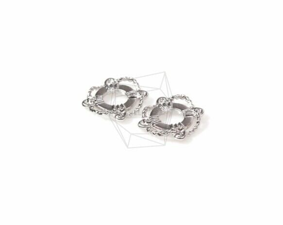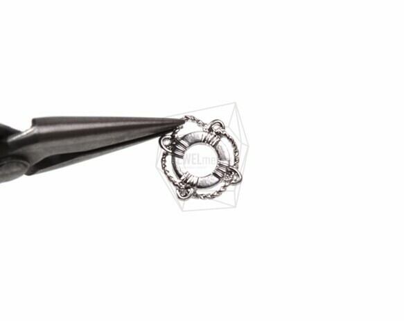 PDT-1181-MR/4Pcs-Tube Pendant/Life Belt Pendant / 14mm x 14mm/Matte Rhodium Plated Over pewter