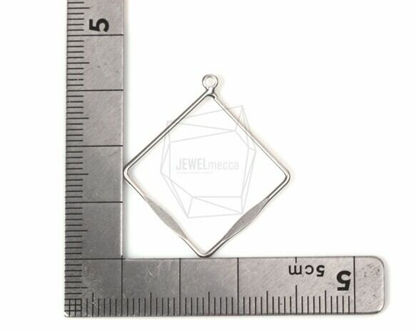 PDT-1186-MR/4Pcs- rhombus Pendant/ 30mm x 32mm/ Matte Rhodium Plated Over Brass