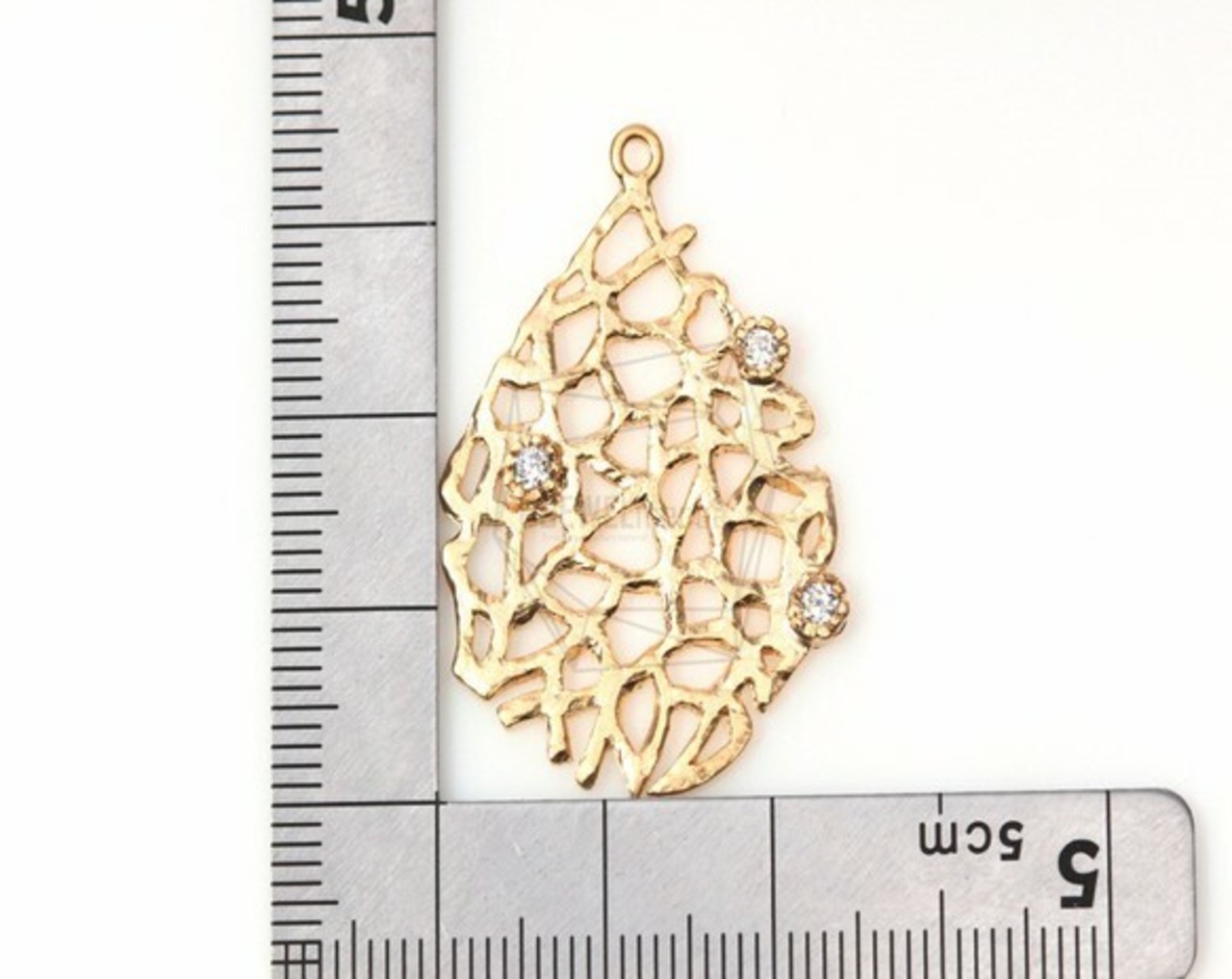 PDT-417-MG/2Pcs-Cubic Zirconia Setting Drop pendant / 25mm x 35mm/Matte Gold Plated over brass
