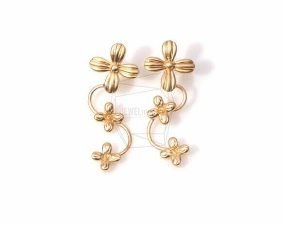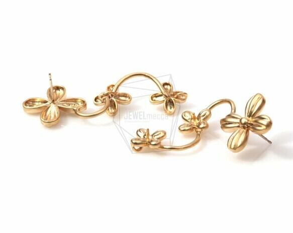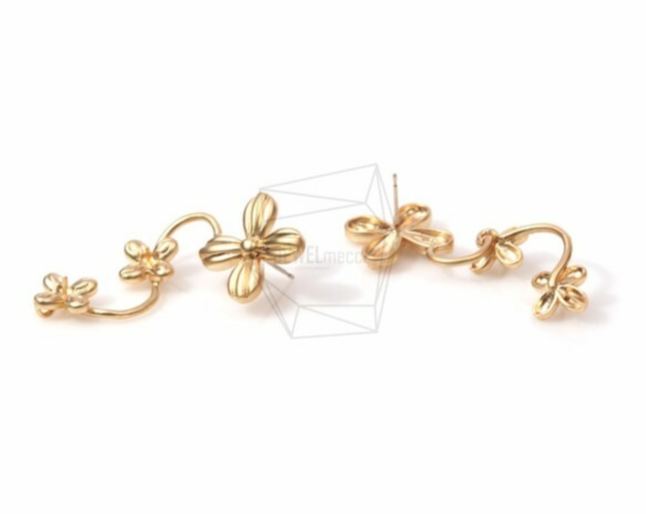 ERG-473-MG/2Pcs-Flower Ear Post/ 18mm x 45mm /Matte Gold Plated over Brass/925 sterling silver post