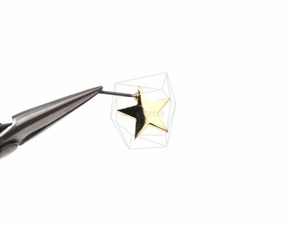 ERG-475-G/2Pcs-Star Stud Earrings/ 13mm x 13mm /Gold Plated over Brass/titanium post