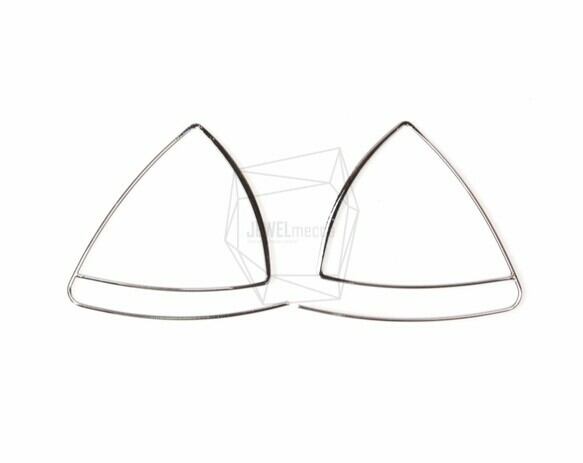 ERG-478-R/2PCS/triangle Hook Earring/40mm x 40mm/Rhodium Plated over Brass