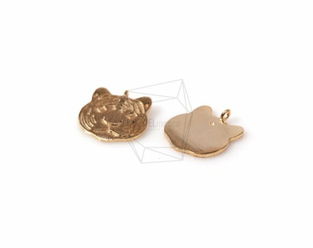 PDT-1191-MG/2Pcs-Tiger Face Pendant/13mm x14 mm/Matte Gold Plated over brass
