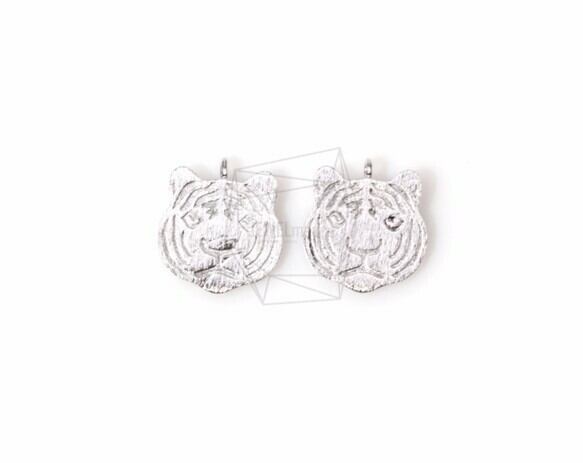 PDT-1191-MR/2Pcs-Tiger Face Pendant/13mm x14 mm/Matte Rhodium Plated over brass