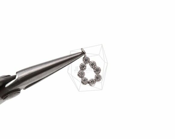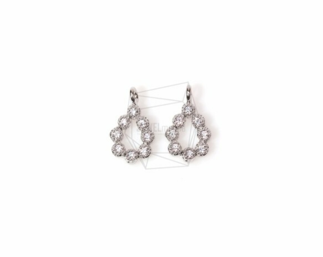 PDT-1201-R/2pcs/Cubic Zirconium Tear Drop Pendant/8mm x 12mm/Rhodium Plated Over Brass