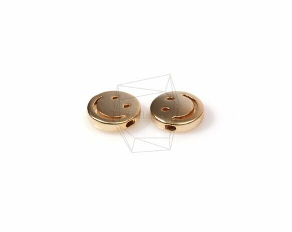 PDT-1203-MG/2Pcs-Round Smile Pendant/ 9mm /Matte Gold Plated over Brass