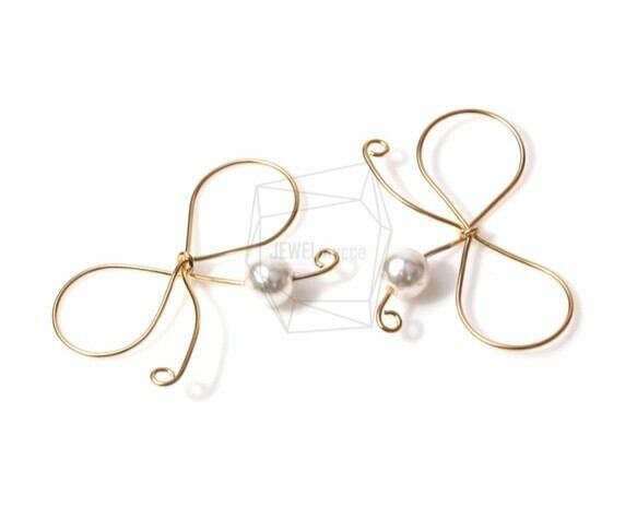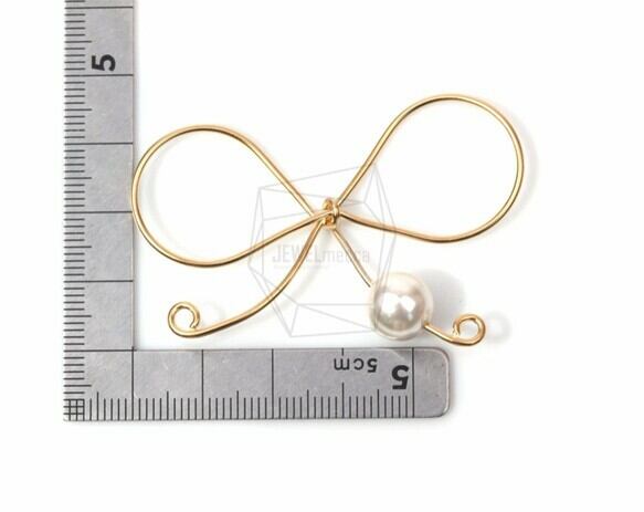 PDT-1205-MG/2pcs/Wire Ribbon Charm With Pearl/28mm x 52mm/Plated Over Brass
