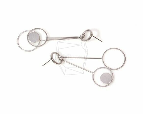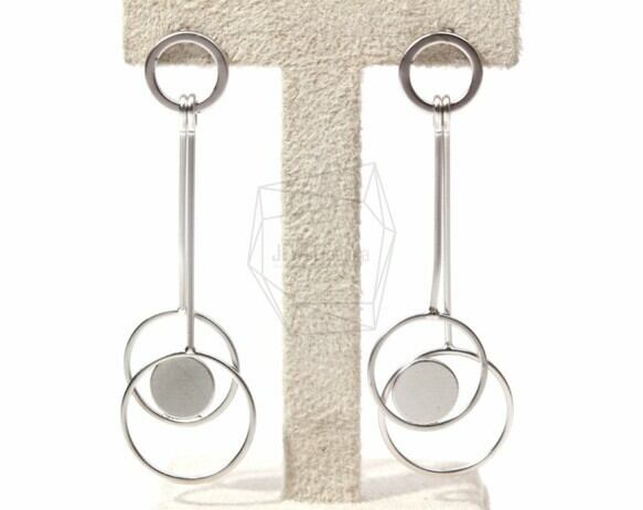 ERG-493-MR/2PCS/Double Circle Dangle Post Earring/60mm x 18mm/Matte Rhodium Plated over Brass