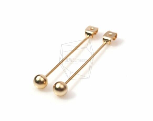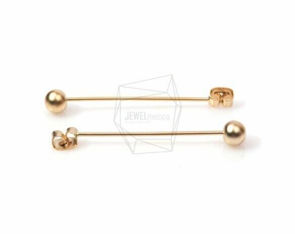 ERG-496-MG/2PCS/Ball With Bar Post Earring Back Component/5mm x 40mm/Matte Gold Plated over Brass