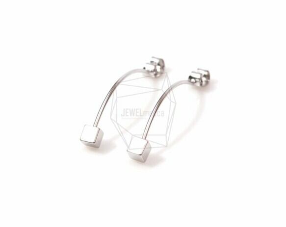 ERG-497-MR/2PCS/Cube With Bar Post Earring Back Component/4mm x 33mm/Matte Rhodium Plated over Brass