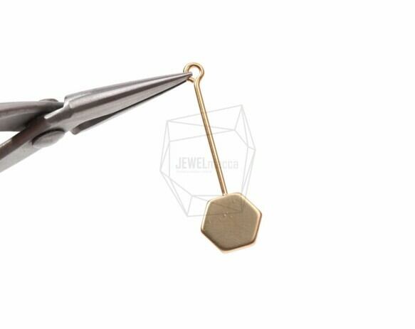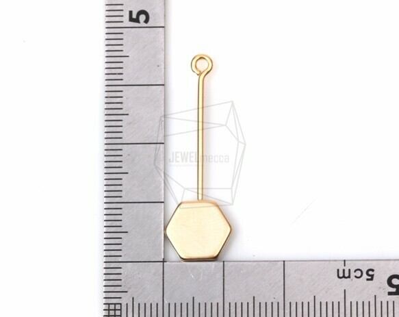 PDT-1213-MG/2PCS/Flat Hexagon With Bar Pendant/12mm x 32mm/Matte Rhodium Plated over Brass