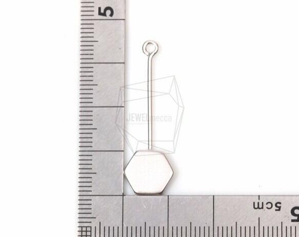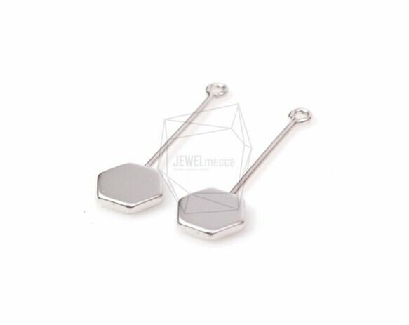 PDT-1213-MR/2PCS/Flat Hexagon With Bar Pendant/12mm x 32mm/Matte Rhodium Plated over Brass