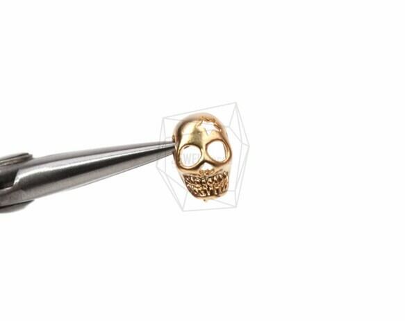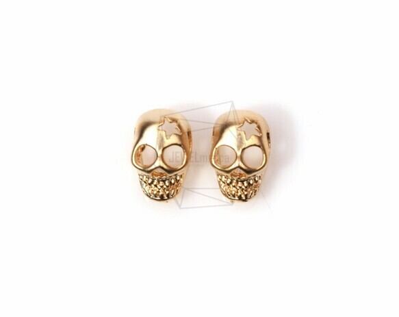 PDT-1216-MG/2PCS/Star Forehead Skull Pendant/12mm x 8mm/Matte Gold Plated over Brass
