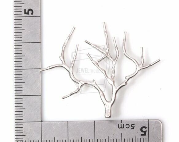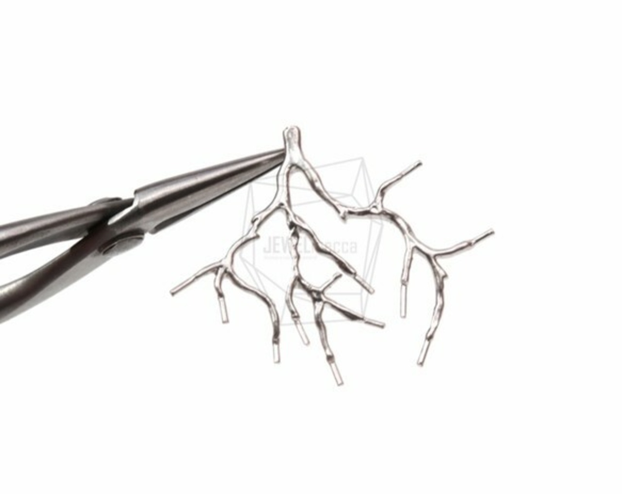 PDT-1218-MR/2PCS/Tree Branch Pendant/45mm x 42mm/Matte Rhodium Plated over Brass