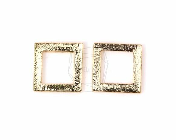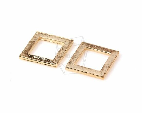 PDT-1219-G/2PCS/Square Textured Frame Pendant/15mm x 15mm/Gold Plated over Brass