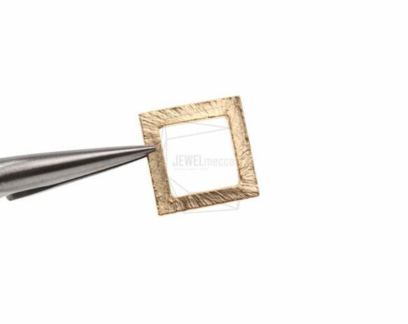 PDT-1219-MG/2PCS/Square Textured Frame Pendant/15mm x 15mm/Matte Gold Plated over Brass