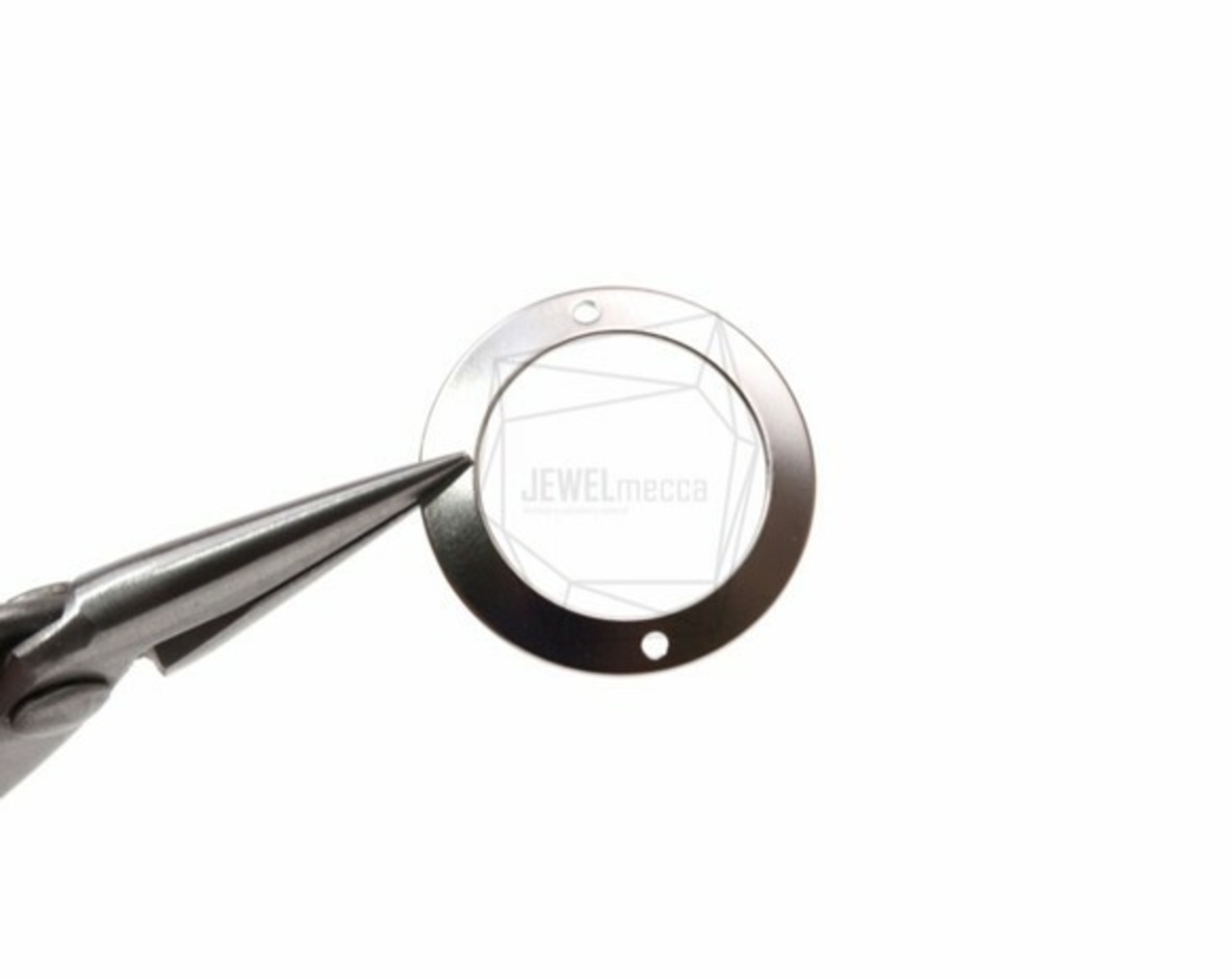 PDT-1228-MR/2PCS/Round Circle Ring Pendant/23mm x 23mm/Matte Rhodium Plated over Brass