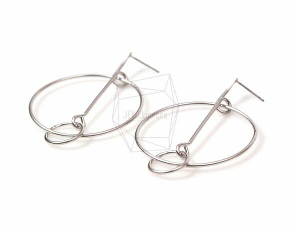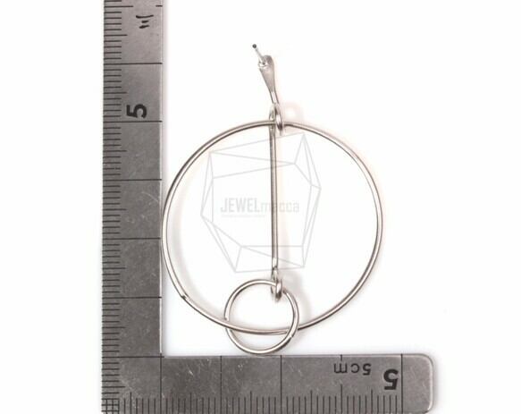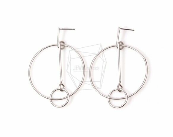 ERG-519-MR/2PCS/Double Ring Earring Post/50mm x 50mm/Matte Rhodium over Brass/Titanium post