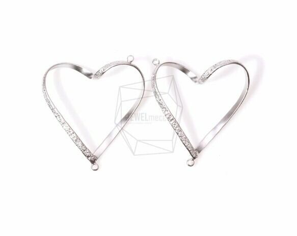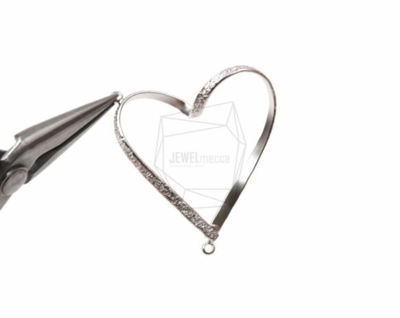 PDT-1231-MR/2PCS/Textured Heart Band Pendant/35mm x 33mm/Matte Rhodium Plated over Brass