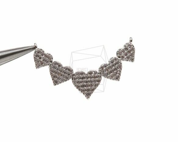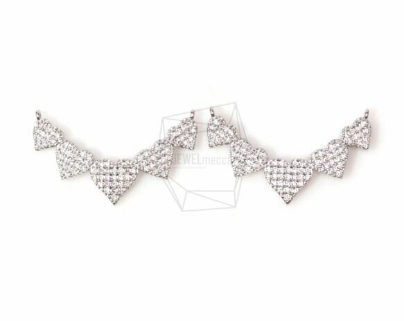 CNT-163-R/1PC/Heart CZ Garland Charm/30mm x 17mm/Rhodium Plated over Brass