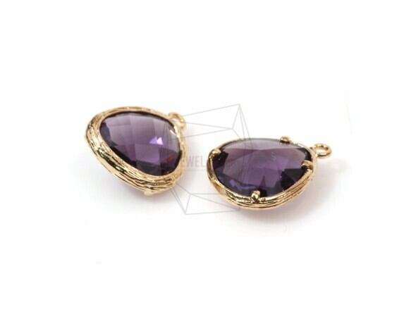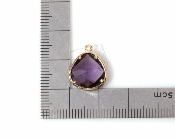 GLA-108-G/2Pcs-Triangle Framed Stone Charm(Amethyst)/13mmx15mm /Gold Plated over Brass