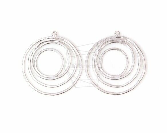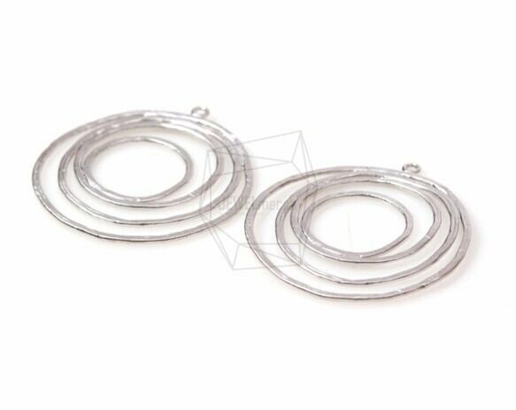 PDT-1019-MR/2PCS/Hammered Swirl Pendant/30mm x 30mm/Matte Rhodium Plated over Brass