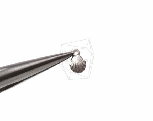 PDT-732-MR/4PCS/Seashell Pendant-5mm x 5mm/Matte Rhodium Plated over Brass
