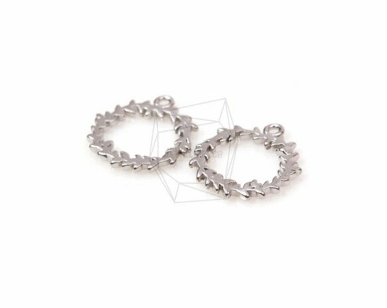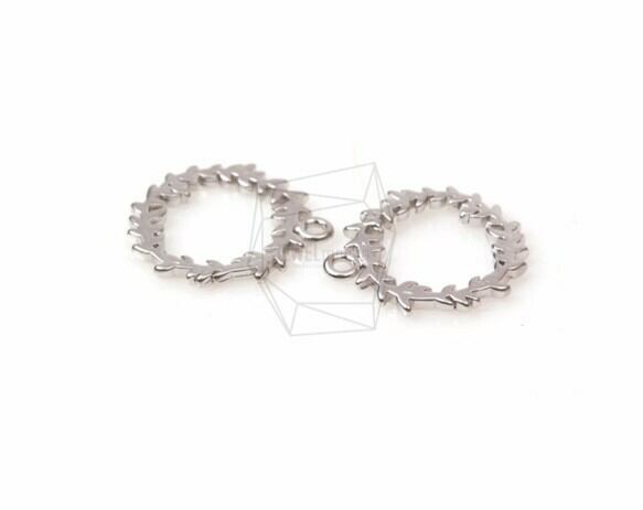 PDT-734-MR/2PCS/Wreath Pendant/14mm x 14mm/Matte Rhodium Plated over Brass