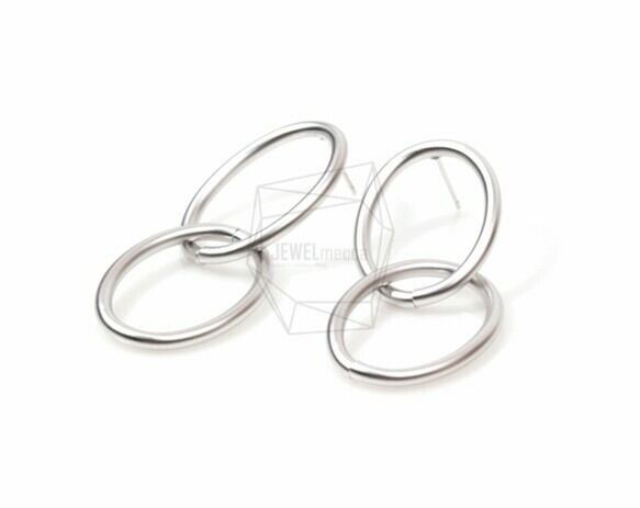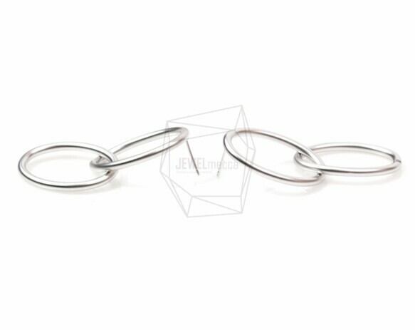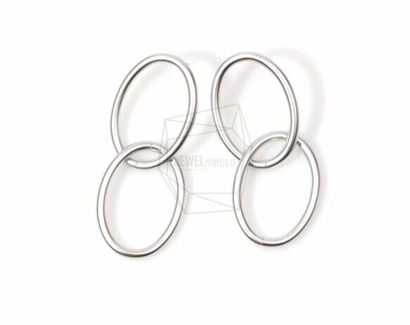 ERG-532-MR/2PCS/Hoop Link Ear Post/20mm x 50mm/Matte Rhodium Plated over Brass
