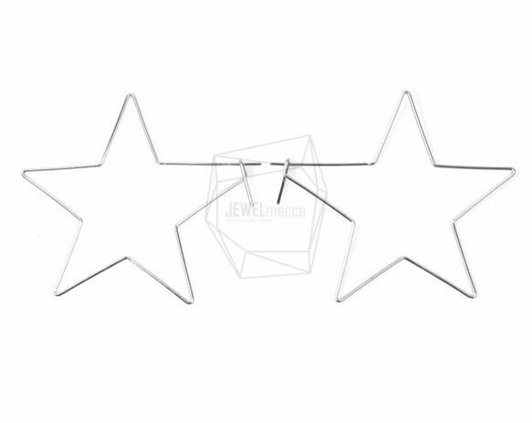 ERG-537-R/2PCS/Wire Star Earring/50mm x 45mm/Rhodium Plated over Brass