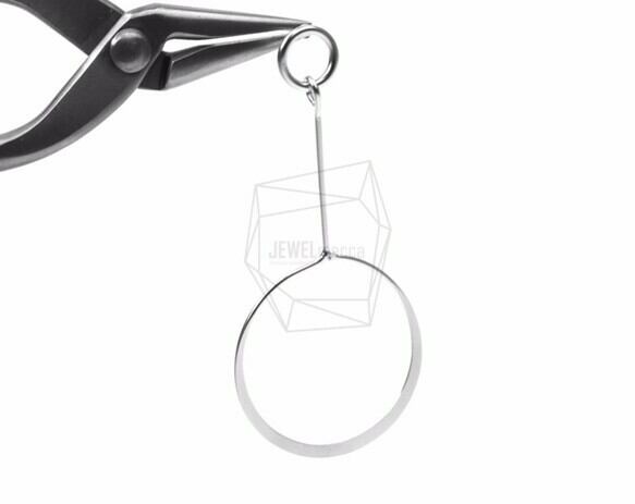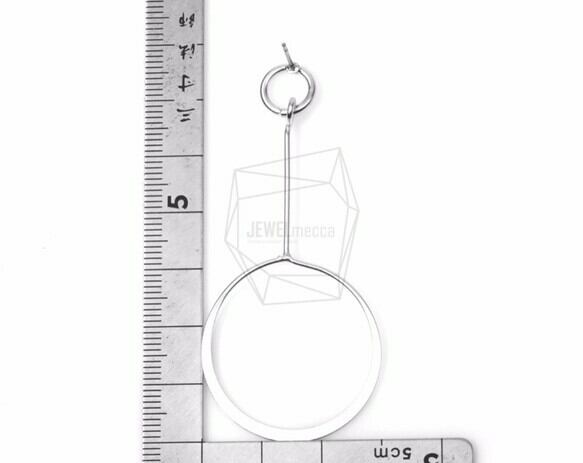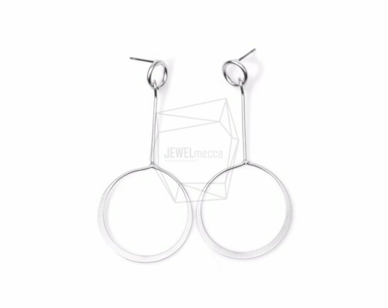 ERG-538-MR/2PCS/Hanging Circle Ear Post/30mm x 70mm/Matte Rhodium Plated over Brass/Titanium Post