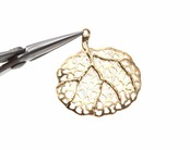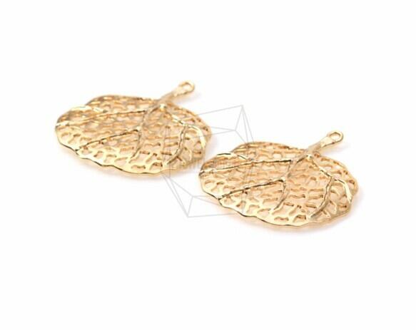 PDT-1128-MG/2PCS/Round Leaf Cutout Pendant/33mm x 35mm/Matte Gold Plated over Brass