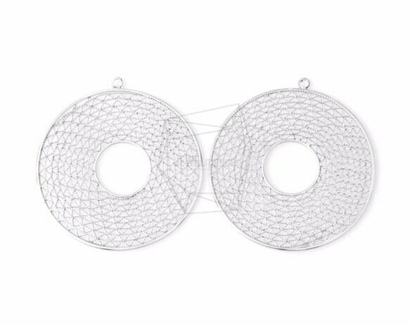 PDT-743-MR/Circle Frame Pattern Pendant/40mm x 40mm/Matte Rhodium Plated over Brass