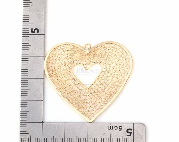PDT-744-MG/Heart Frame Pattern Pendant/40mm x35mm/Matte Gold Plated over Brass