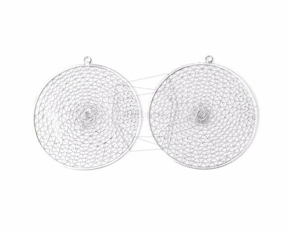 PDT-745-MR/Circle Pattern Pendant/40mm x40mm/Matte Rhodium Plated over Brass
