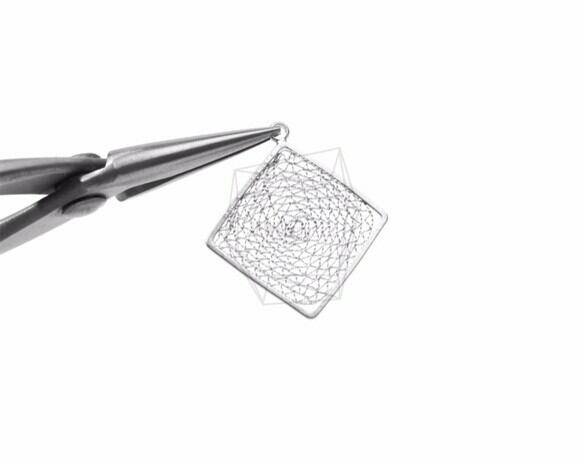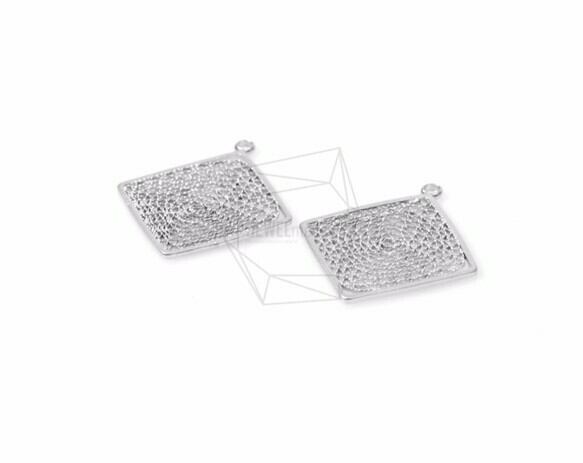 PDT-748-MR/2PCS/Diamond Pattern Pendant/25mm x 25mm/Matte Rhodium Plated over Brass