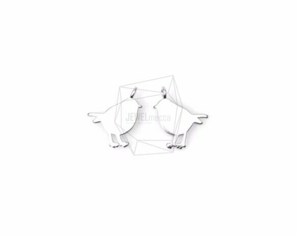 PDT-752-MR/2PCS/Bird Pendant/10mm x 10mm/Matte Rhodium Plated over Brass