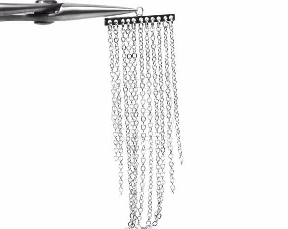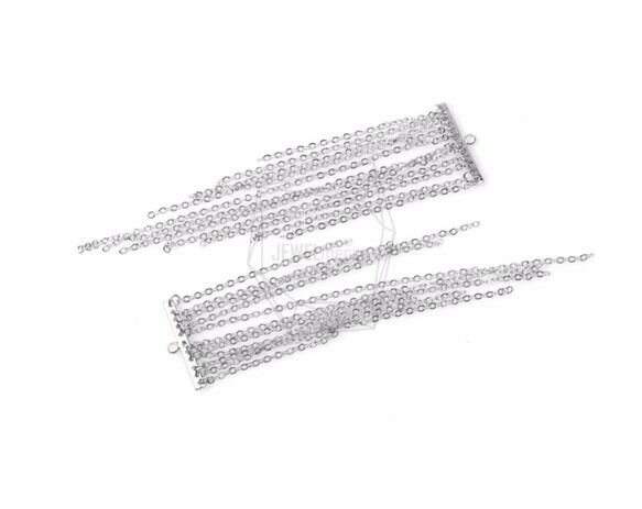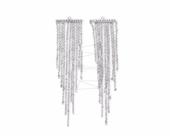 ERG-554-R/2PCS/Chain tassel Charm/25mm X 77mm/Rhodium Plated over Brass