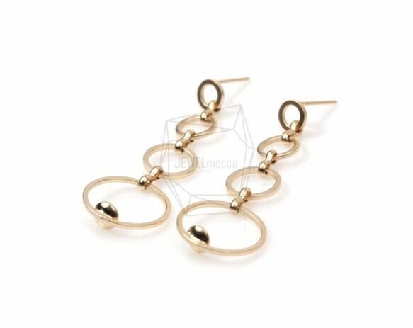 ERG-549-MG/2PCS/Linked Hoop Earring Post/50mm x 17mm/Matte Gold Plated over Brass