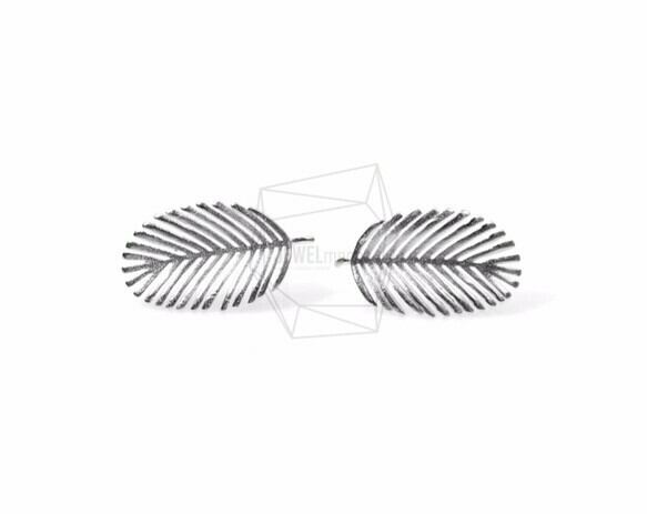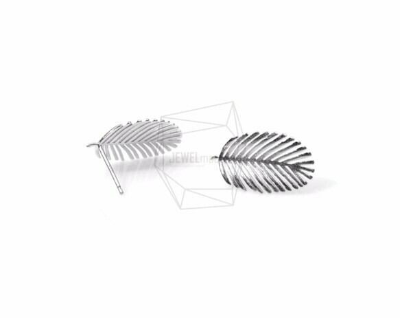 ERG-559-MR/2PCS/Palm Leaf Post Earring/10mm X 20mm/Matte Rhodium Plated over Brass,925 Silver Post